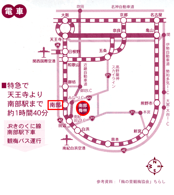 ↓ 「南部駅」を下車後、観梅バスやタクシーにて南部梅林へ(約15分) |