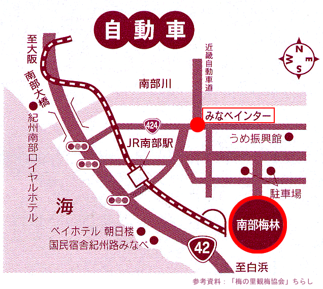 ↓ 「みなべIC」 から南部梅林まで約2km(約5分) |