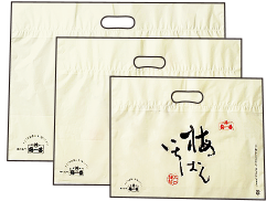 - はい、ご注文時お申し付けいただけましたら、右のような手提げ袋(ポリプロピレン製)を同封してさせていただきます。